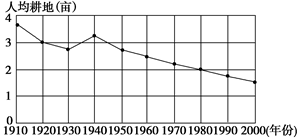 2、单选题 读“我国人均耕地变化图”,完成19题。