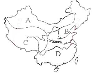 3、单选题 读中国自然区域示意图回答下列各题。