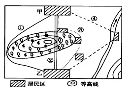 4、单选题 要在下图为甲、乙两县城之间设计一条公路,从经济、社会效益综合考虑,四个方案中最合理的是