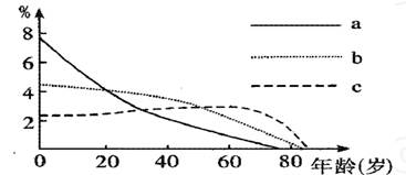5、单选题 读某地区人口年龄结构示意图,图中a、b、c分别表示1930年、1970年、20年的人口年龄结构状况。回答1~2题。