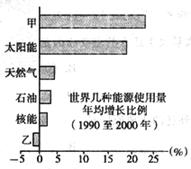 3、单选题 读“世界几种能源使用量年均增长比例图”,其中甲能源为可再生能源,乙能源为非可再生能源。完成17-18题。