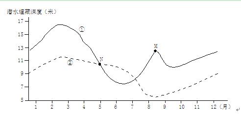 4、单选题 下面是我国两地潜水埋藏深度年变化曲线图,读图回答。