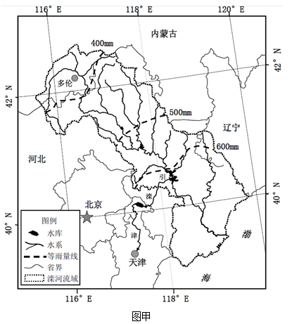 (2)滦河的主要补给水源是_________ ;从内、外流河类型看,该河为_________ 河。(4 分)