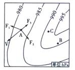 (1)图中箭头V表示A点空气匀速运动方向,此图是 半球气压分布图。