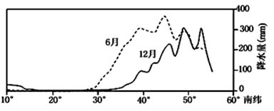 【小题1】根据纬度及降水量曲线的变化,30°-40°纬线大陆西岸在6月份降水较多,12月份降水较少,所以该大陆位于南半球,D错误;澳大利亚大陆、非洲大陆在40°S以南没有陆地,B、C错误。只有南美洲大陆符合,D正确。