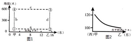 5、单选题 图1示意某沿海地区海陆风形成的热力环流剖面图,图2该地区近地面与600米高空垂直气压差的分布状况,读图回答问题。
