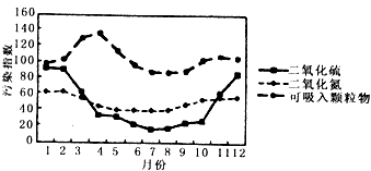 (1)上图反映出影响北京空气质量的首要污染物是________,该污染物的浓度高值期在________月份,