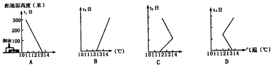 (4)某地四日气温垂直分布示意图中,近地面空气污染最严重的是