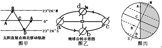 (2)图乙中a→b期间太阳直射点在 半球,并且正在向 移动。