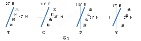 1.图中既是省区分界线,又是我国地势三级阶梯分界线的山脉是2.下列关于图中山脉及其两侧地理事物的说法,正确的是