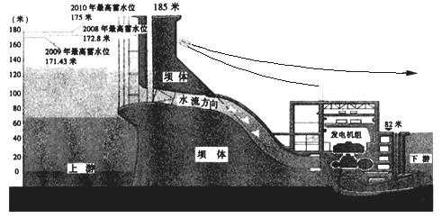 4、单选题 2010年10月26日,三峡水利枢纽工程首次成功蓄水至175米水位。读图,回答1~2题。