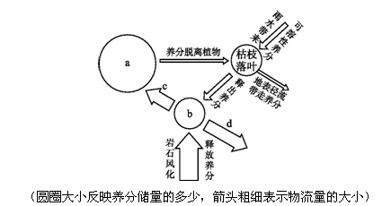 1、单选题 读“雨林生态系统的养分循环示意图”,完成第8~10题。