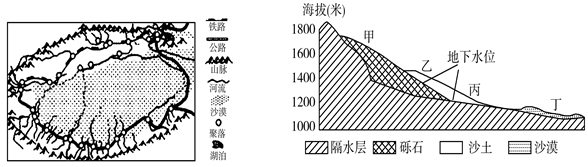 2.图2甲乙丙丁四地中,丙地处于山麓地带,有地下水出漏,另外丙处为较细的沙土,土质相对较好,故绿洲应分布在丙地。
