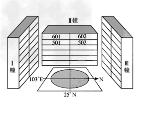 4、单选题  下图为“某城市一住宅区房屋建筑示意图”。读图,完成1-2 题。
