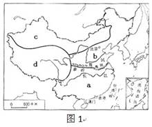 4、单选题 读中国四大地理区域图(图1),完成问题。