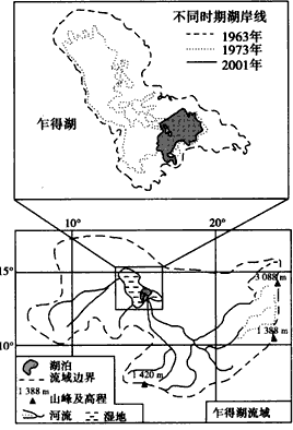 4、单选题 下图是非洲乍得湖流域图。读图,回答第1—2题。