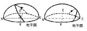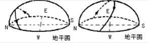 (6)此日,西安(34.27°N、108.9°E)当地看到太阳升落的视运动轨迹示意图为?