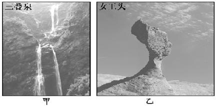 5、单选题 甲、乙两图分别为庐山三叠泉和台北海滨野柳“女王头”景观图,下列有关甲、乙两处景观的说法,正确的是 ( )