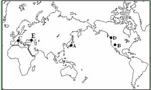 小题3:图中字母所示地点位于世界主要地震带上的有