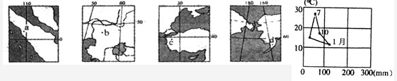 2、综合题 万众瞩目的2010年冬奥会已在加拿大温哥华(北纬49°16′,西经123°7′)闭幕,2014年冬奥会将在俄罗斯索契举行。索契位于俄罗斯的黑海沿岸,坐落在索契河谷,北依大高加索山脉西段。这里拥有了宜人的气候。读下列图表资料,回答问题。