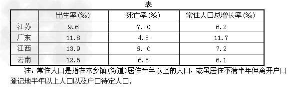 4、单选题 下表是“2009 年我国部分省份人口资料( 据国家统计局)”。读表完成1 ~2 题。