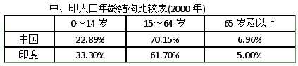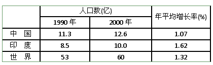 2、综合题 读下列有关中国、印度的人口资料,回答问题。