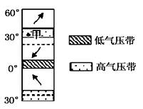 【小题2】没有副极地高气压带,A错。此季节,甲地受副热带高气压带控制,气候炎热干燥,河流进入枯水期,B、C错。北半球是夏季,所以昼长夜短,D对。