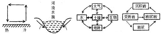 本题解析:热力环流的基本原理:热空气上升,冷空气下沉;A错误;图示河流水位高于地下潜水位,则说明河流水补给地下潜水位,B错误。C图反映自然环境各个要素之间相互影响、相互制约,C正确。D图反映地质循环,岩浆岩应只能由岩浆冷凝而生成,D错误。