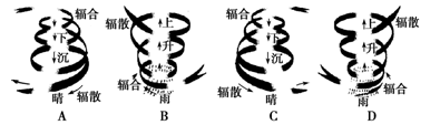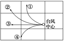 小题1:北半球的台风,为低压,近地面形成逆时针的辐合气流,垂直方向上盛行上升气流,形成暴雨天气。故为D项。
