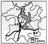 4、单选题 在近日举行的鄱阳湖生态经济区建设与中部地区发展论坛上,江西省发改委主任介绍说,为了保护鄱阳湖“一湖清水”、保障长江中下游水生态安全,江西省正在全力推进鄱阳湖地区生态工程建设。下图表示鄱阳湖生态经济区范围。读图完成1—2题。?