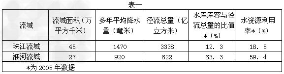 (3)淮河流域的径流总量比珠江流域_____,但水资源利用率比珠江流域_____,其主要原因是__________________________。
