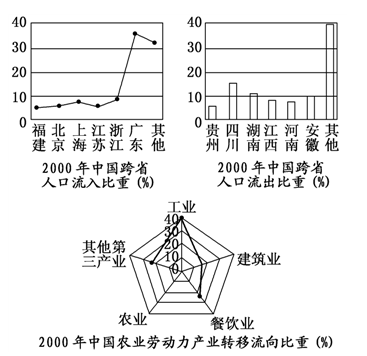 1.图中所示2000年中国人口流动特征是