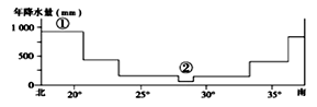 【小题1】由图中纬度变化可以推测所在南北半球,再根据降水量状况推断气候类型、成因。由图可知该大陆向南纬度数增加,应该在南半球;该地区纬度范围在20°--35°S之间,而且140°经线穿过的只有澳大利亚大陆;根据澳大利亚气候类型分布可知,该地终年降水稀少,属于热带沙漠气候,是由于终年受副热带高压带和信风带控制造成的,故选项B正确。
