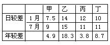 表1:①②③④四地气温年、日较差统计表(单位:℃)