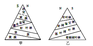 2、单选题 读甲、乙两地垂直自然带分布图,回答题。