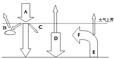 小题1:图示A、D、E三种辐射中,属于长波辐射的是___________,属于短波辐射的是______________。(2分)