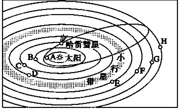 (2)E位于小行星带的外侧,应该为木星,位于木星外侧的为土星,两者属于巨行星。