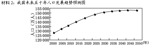 (1)材料1和材料2反映现阶段我国的人口自然增长模式属于__型,我国人口将先后迎来___、___、____等三大高峰。