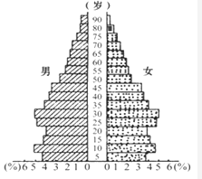 5、单选题 右图为2000年我国人口年龄及性别结构,回答24~25题。