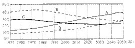 (1)图中四条曲线中,已知A曲线是发达国家老年人口系数,判断另三条曲线中,代表发达国家少年儿童人口系数的是?;代表发展中国家老年人口系数的是?;代表发展中国家少年儿童人口系数的是?。
