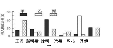 4、单选题 图中甲、乙、丙反映了三类工厂的投入构成情况,据此回答题
