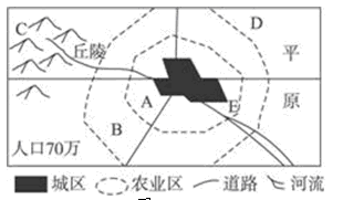 2.E地蔬菜生产向城市西北方向转移,移向了河流的上游方向,生产疏菜由于化肥、农药等的使用,会污染河流水源。选B正确。