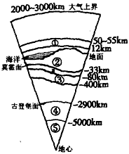 1、多选题 下图为“地球圈层结构示意图”(图中②+a=岩石圈),读图回答1—2题。