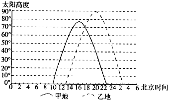 5、单选题 图为6月22日甲、乙两地太阳高度日变化示意图,关于甲、乙两地的说法正确的是( )