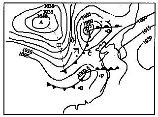 5、综合题 下图是“我国部分地区春季某时的气压分布”图,读图完成下题。