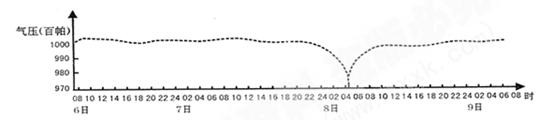 4、单选题 下图为“夏秋之交杭州三天气压变化示意图”,读图回答3--4题。