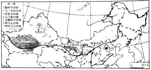 4、综合题 据报道,全国农业区划办公室对黑龙江的三江平原、内蒙古和甘肃的河西走廊、新疆哈密地区共53个县级单位的1986年、1996年卫星遥感图像进行了判读比较,发现上述四省区10年中被开垦的草地和荒地总面积近200万公顷(其中开垦草地约120万公顷,开垦荒地约80万公顷),而实际新增的耕地总面积仅为100万公顷。当地群众看到开垦后被撂荒的土地,心疼地说:“一年开草场,二年打点粮,三年五年变沙梁”。读图回答下列问题。