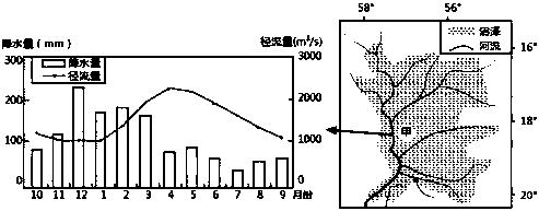 3、单选题 下图为某河流局部水系及甲地平均径流量曲线和降水量柱状图。完成题。