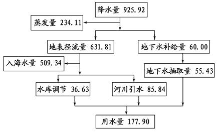 1、单选题 下图表示我国某区域年平均的水平衡收支概算(单位:亿m3),该地区年均降水量约1 000 mm。读图完成小题。