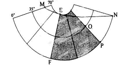 小题1:阴影与空白区分属不同的日期,图中EF与PO所在经线分别为0:00或1800经线,E点与晨昏线MN相切,由此可判断EF为0:00,PO为1800经线,由此可判断地球自转方向是逆时针,图示为北半球,北极是极昼时期。图中P、O两地日出时刻不同,A错;P地正午太阳高度小于O地,B错;O地昼长大于P正确;O、P两地角速度相同,但线速度P大于O。选C正确。
